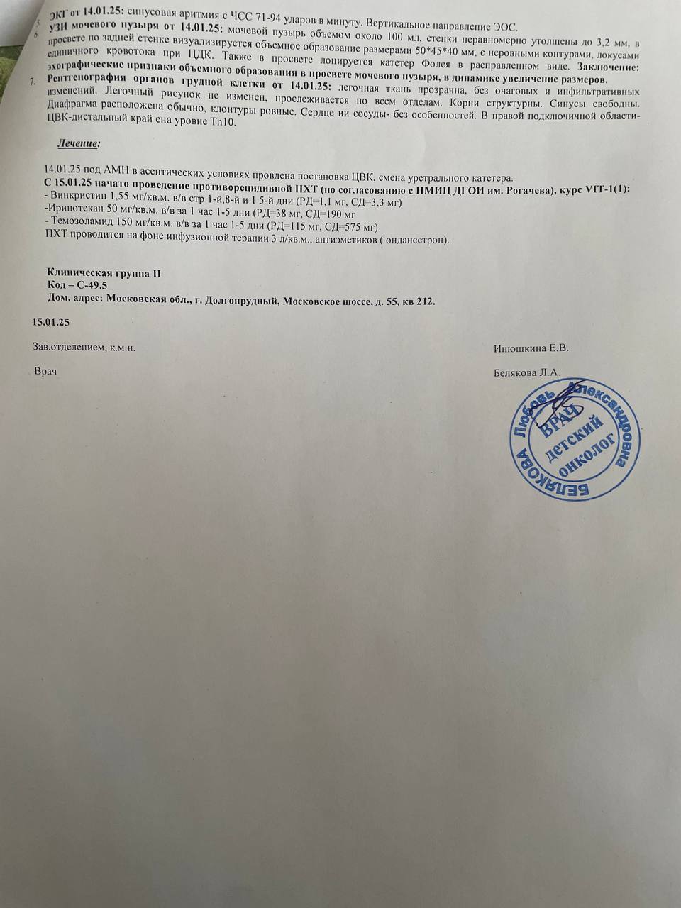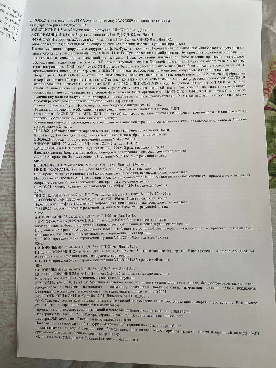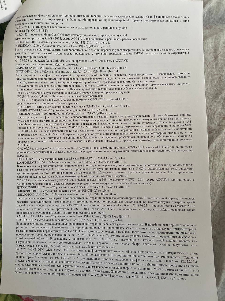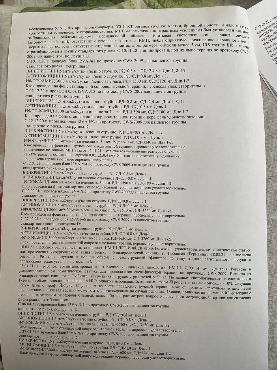 И сейчас, когда болезнь вернулась снова, остаётся все меньше вариантов лечения, а возможно, последний — лечение импортными препаратами. К сожалению, отечественная химия не даёт результатов, а стоимость курса импортных препаратов достигает 495 000 рублей за один курс, а таких курсов может потребоваться от 8 до 14.