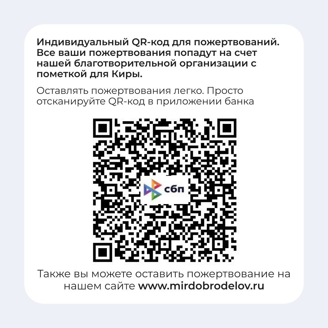 🙏 Мы верим, что вместе сможем больше! 🙏 Каждое ваше пожертвование приближает Киру к выздоровлению и даёт шанс на полноценное детство.