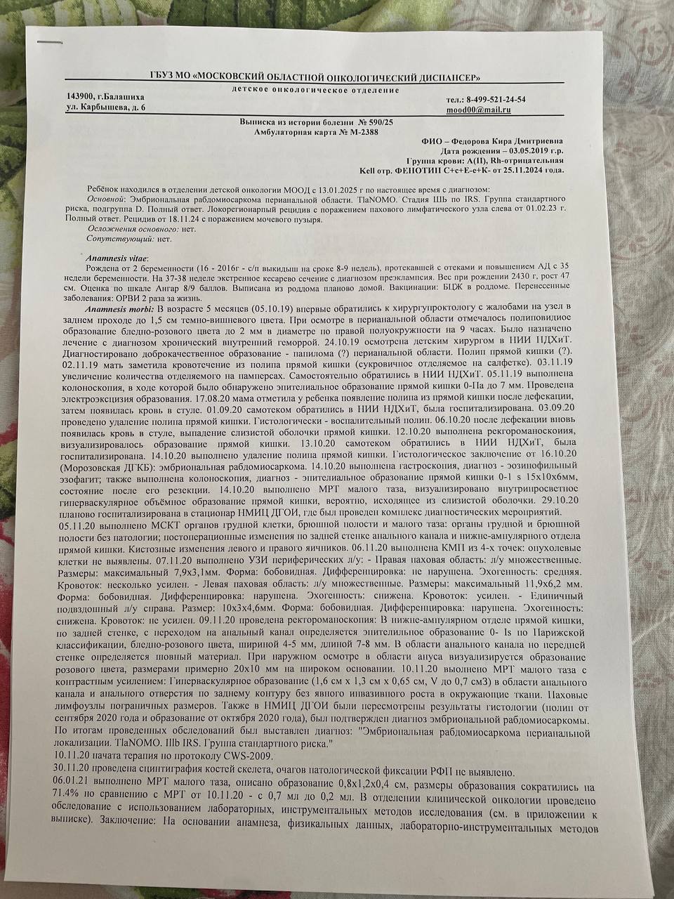 К нам обратилась мама шестилетней Киры с просьбой о помощи. У девочки случился рецидив рака — эмбриональная рабдомиосаркома 3 стадии (саркома мягких тканей).