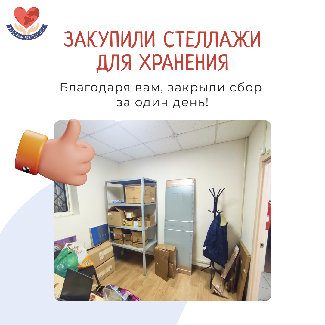Наш куратор по инфраструктуре фонда, Владимир https://vk.com/rozzinvlad, приобрёл два новых стеллажа и коробки для сортировки вещей по возрасту и полу. Общая сумма покупки составила 13 250 руб. (фото чека в посте).