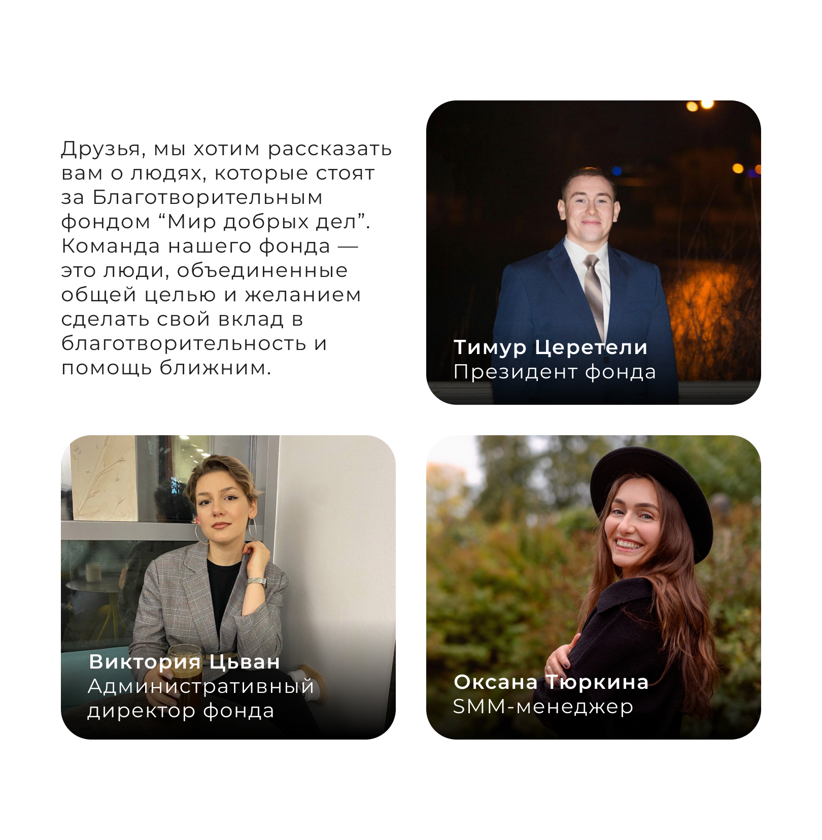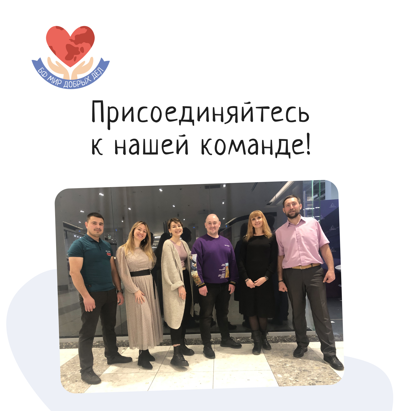 Сегодня мы хотим вам рассказать о тех людях, которые стоят за нашим Благотворительным фондом "Мир добрых дел" — о нашей команде.