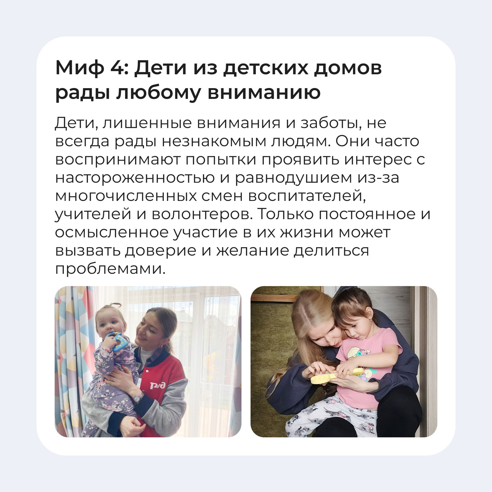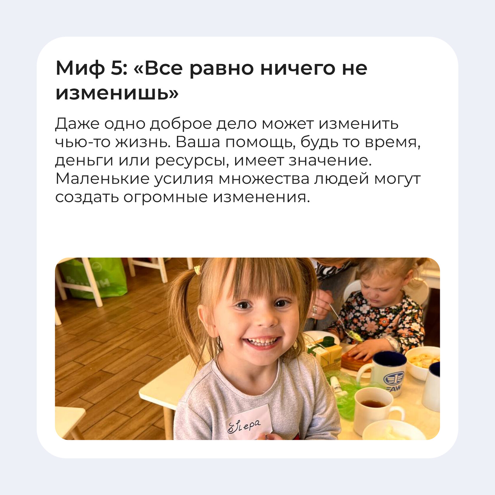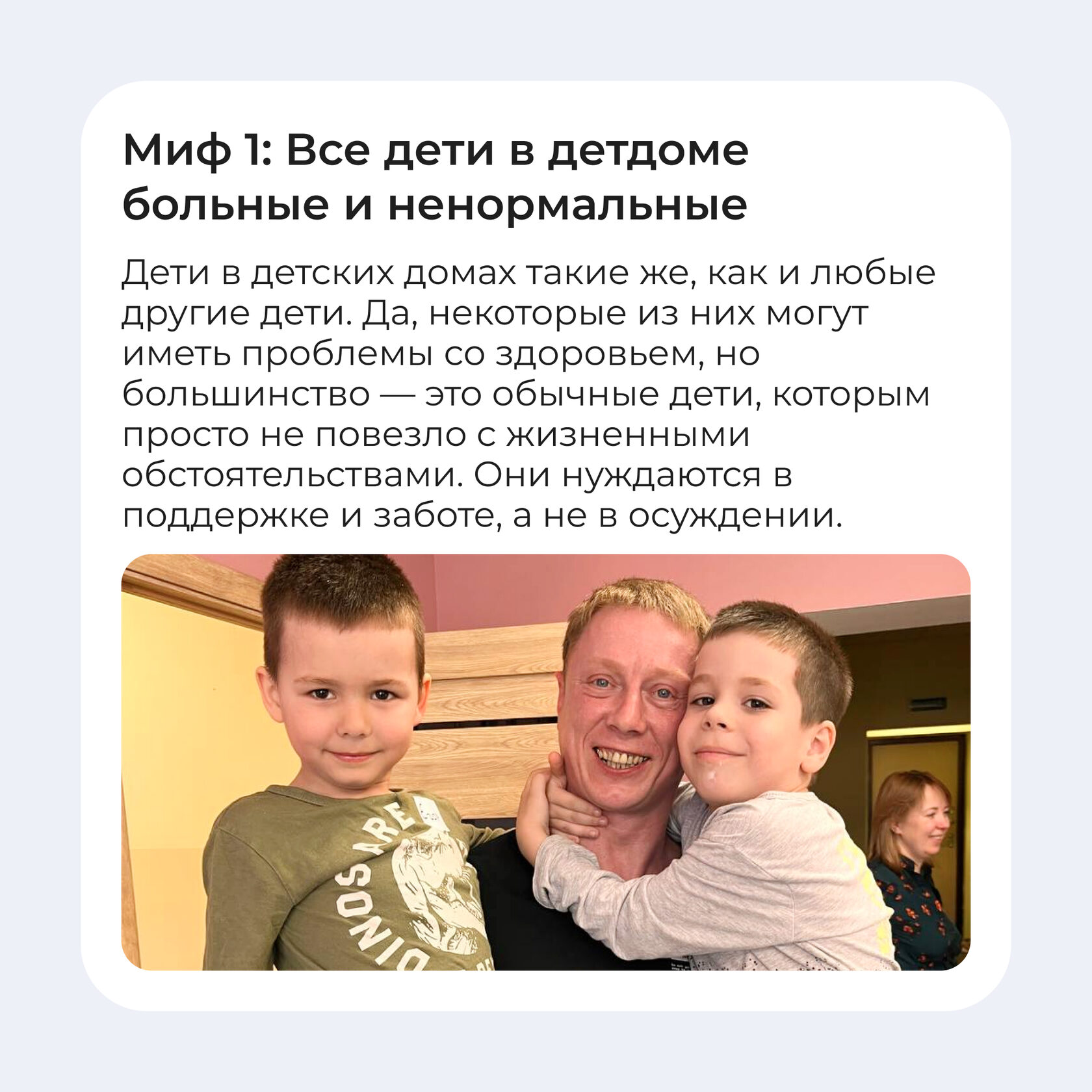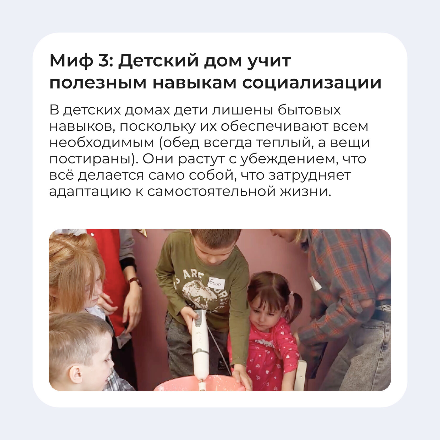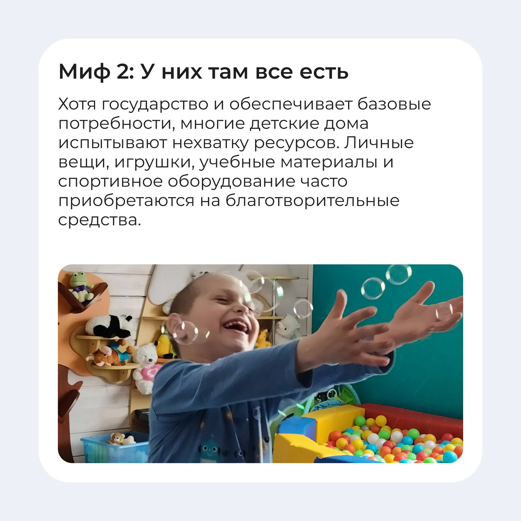 Сегодня мы хотим рассказать о популярных мифах и почему важно понимать, как живут дети в детских домах и какая помощь им действительно нужна. Листайте фото в карусели.