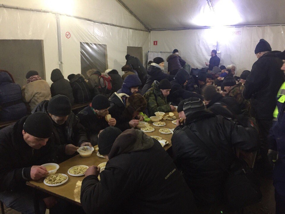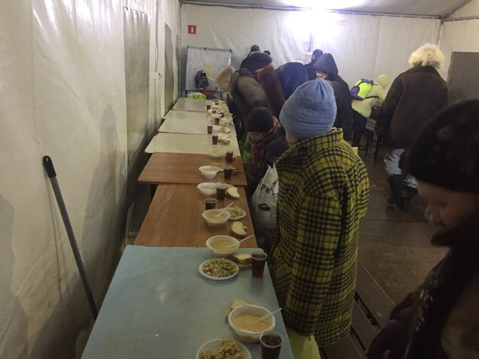 На протяжение года мы привозим горячие обеды, одежду, медикаменты, средства личной гигиены.